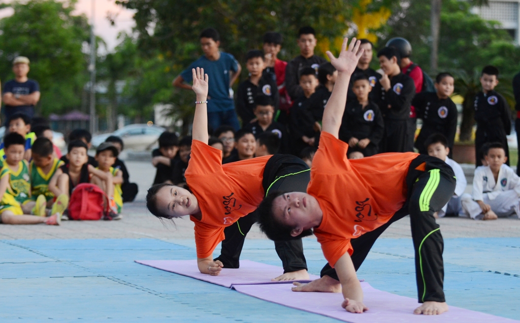 Sau lễ khai giảng, hàng trăm học viên nhí và phụ huynh đã được chứng kiến những màn biểu diễn thể thao, nghệ thuật sôi động, hấp dẫn và không kém phần gay cấn của một số HLV, võ sư, võ sinh tại lễ khai giảng.
