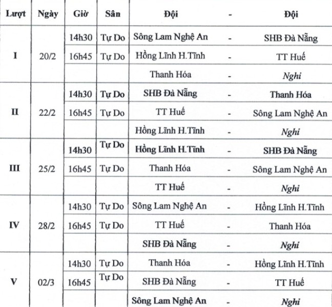 Lịch thi đấu bảng B lượt về vòng loại U19 quốc gia 2019