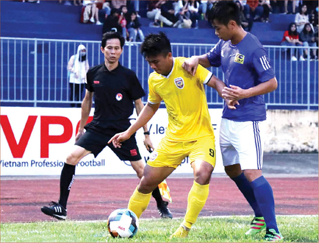 CLB Bóng đá Huế (áo xanh) gặp Hồng Lĩnh Hà Tĩnh tại Cúp Quốc gia 2019