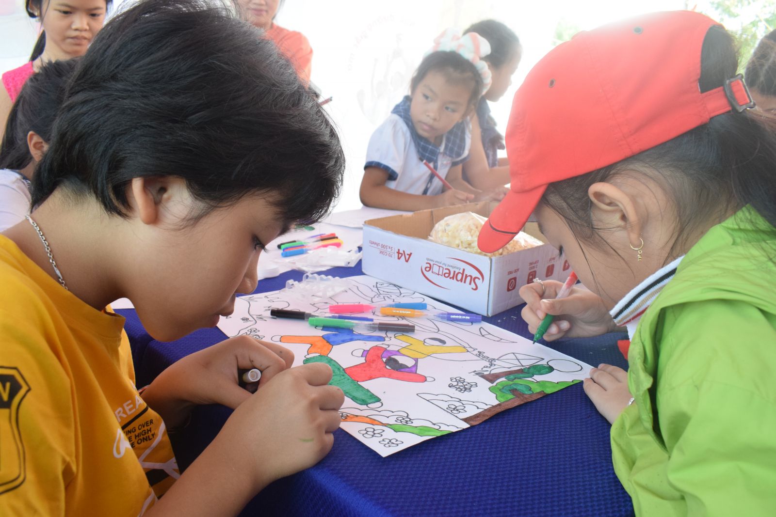 Gian hàng bán thức ăn gây quỹ của các tình nguyện viên cũng rất nhộn nhịp