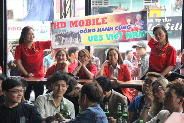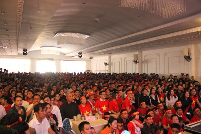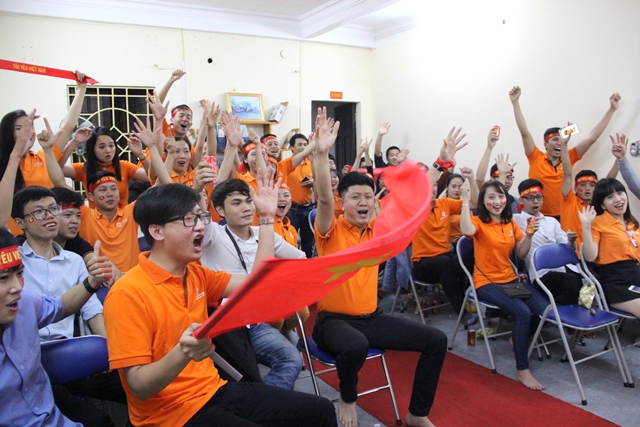 Nhân viên Công ty cổ phần Truyền thông quảng cáo và Dịch vụ du lịch Đài Bàng cuồng nhiệt cổ vũ U23 Việt Nam