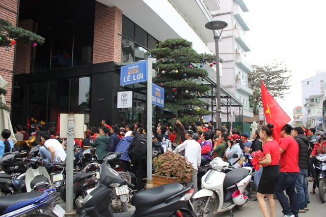 Khu vực đường Lê Lợi – Chu Văn An là một trong những địa điểm được người dân Cố đô chọn làm nơi tập trung để xem và cổ vũ trận bóng đá của U23 Việt Nam – U23 Qatar. Nhiều hàng quán nơi đây lắp đặt màn hình lớn nhằm tổ chức cho những người yêu bóng đá theo dõi cầu hấp dẫn này. Tại các địa điểm này cũng bán cờ, áo in hình quốc kỳ đáp ứng nhu cầu người hâm mộ.
