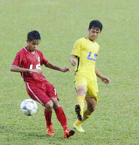 Tiền vệ Nguyễn Hữu Thắng (áo đỏ)