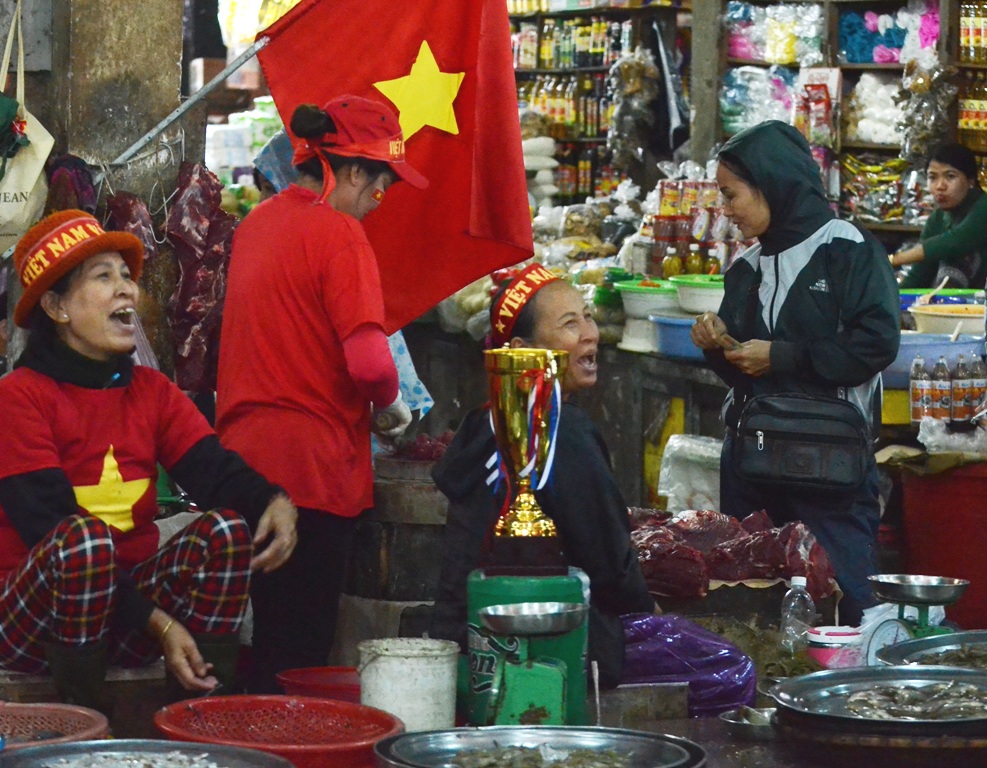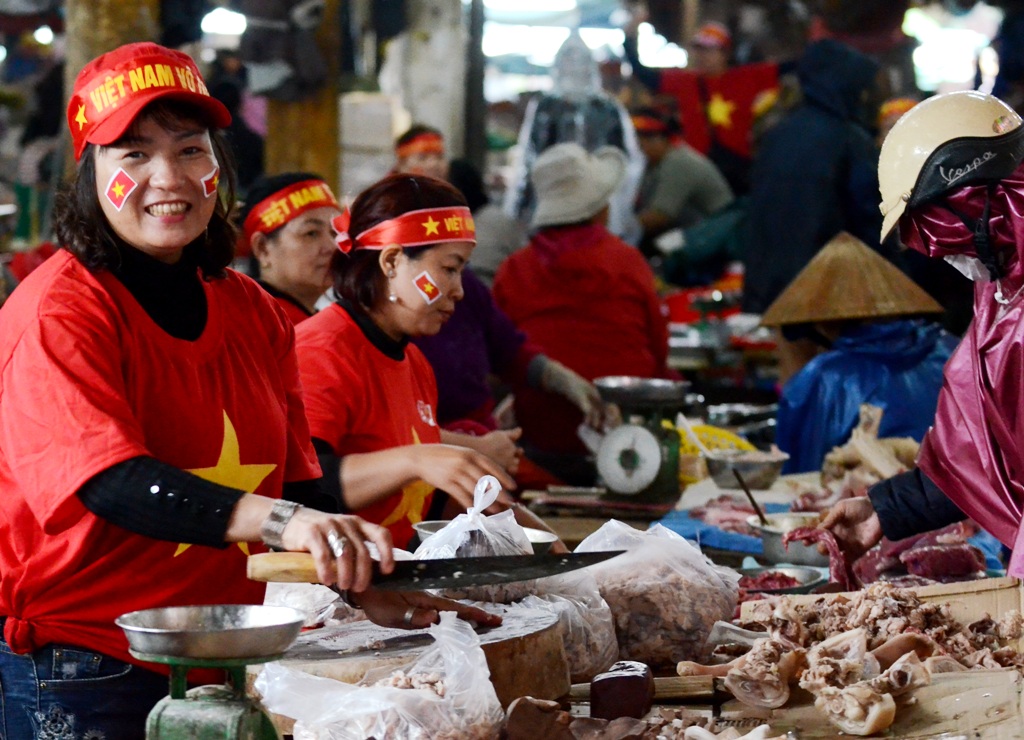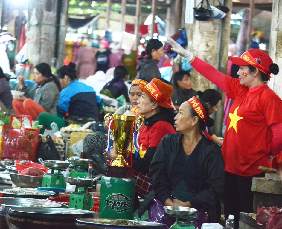 Bên cạnh những động thái chuẩn bị trên, hiện tại, chị em tiểu thương chợ Tây Lộc – khu vực hàng thịt – cá đã và đang nhuộm đỏ một góc chợ bằng trang phục in Quốc kỳ, đồng thời khiến không khí trong chợ náo nhiệt tưng bừng bằng tiếng trống, chiêng, kèn Vuvuzela cùng 3 chiếc cúp vàng liên tục được nâng cao.