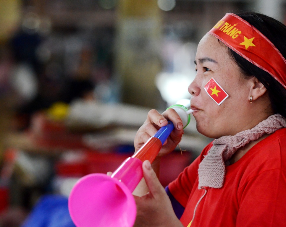 “Chúng tôi đã thuê dàn nhạc. Sau nghi thức hát Quốc ca của trận chung kết, chị em sẽ tập trung để tiếp tục cổ vũ, tiếp lửa cho tuyển VN”, chị Kim Anh – một tiểu thương bán thịt, chả cho biết.