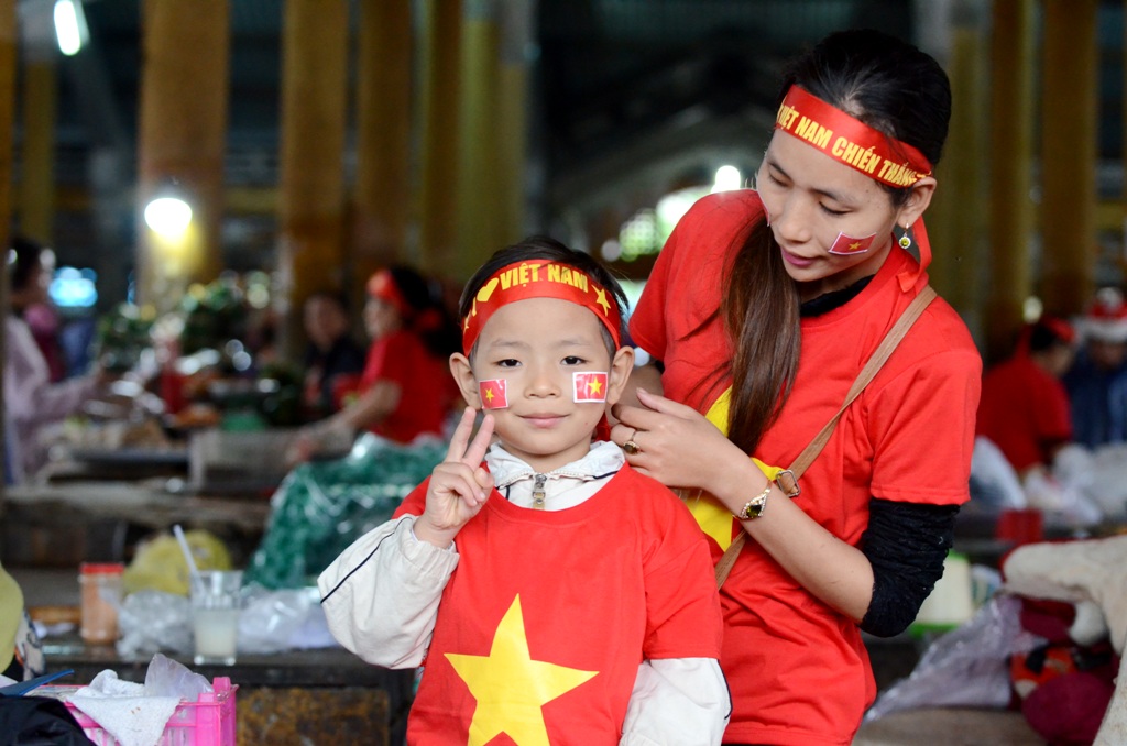 Theo mẹ ra chợ tiếp lửa cho tuyển VN