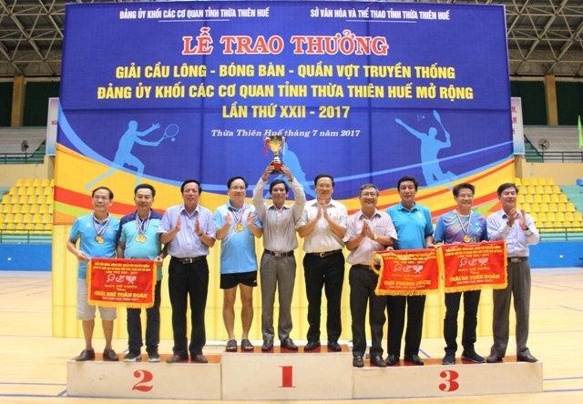 Sau 3 ngày thi đấu liên tục, tối 9/7, Giải Cầu lông – bóng bàn – quần vợt truyền thống Đảng ủy Khối các cơ quan tỉnh mở rộng lần thứ 22 – năm 2017 khép lại Trung tâm Thể thao tỉnh. Ông Nguyễn Quang Tuấn, UVTV Tỉnh ủy, Bí thư Đảng ủy Khối các cơ quan tỉnh đến dự.