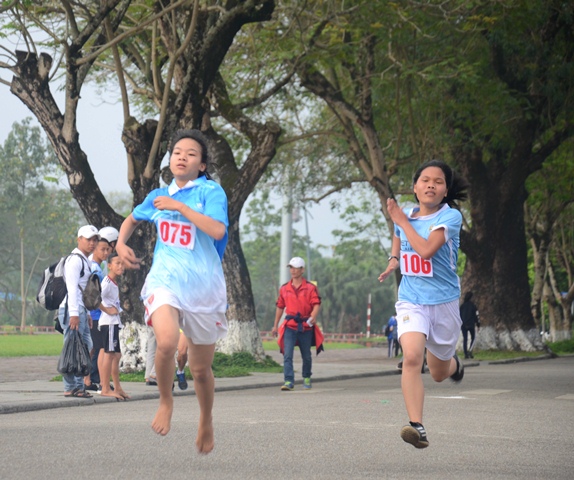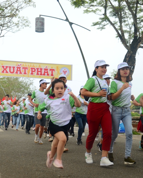 Nhiều em nhỏ cũng tham gia với bước chạy mạnh khoẻ