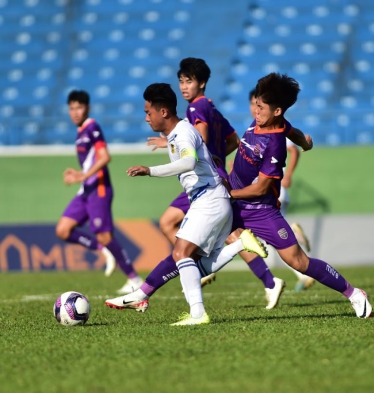 | Một pha tranh bóng trong trận U19 PVF - U19 Đồng Tháp. Ảnh: VFF |