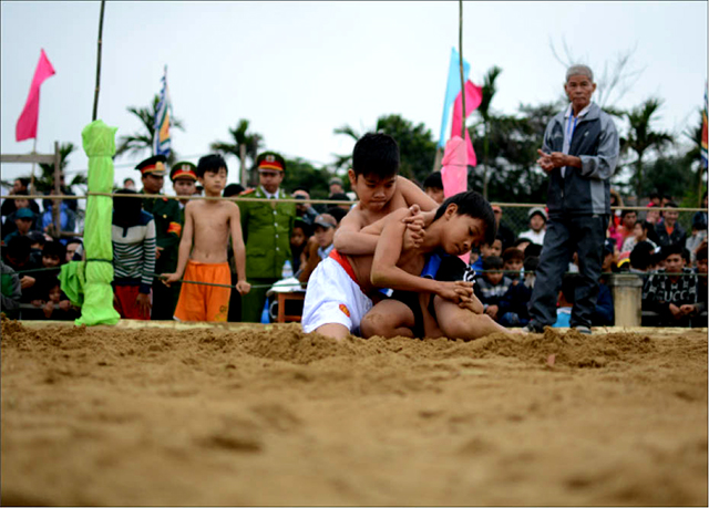 Các đô vật trẻ tại hội vật làng Sình. Ảnh: Võ Nhân