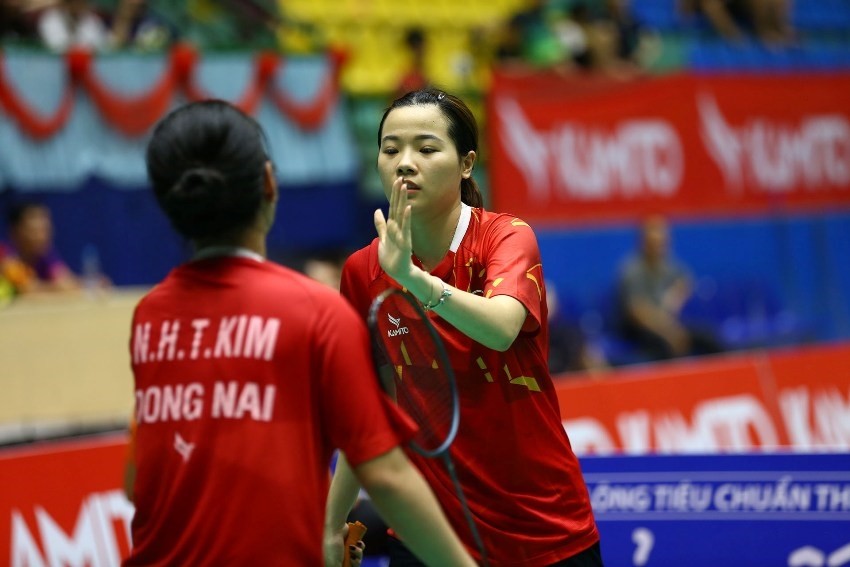 | Nguyễn Thùy Linh cùng Nguyễn Hoàng Thiên Kim thắng trận đôi nữ xác định suất dự bán kết. Ảnh: webthethao.vn |