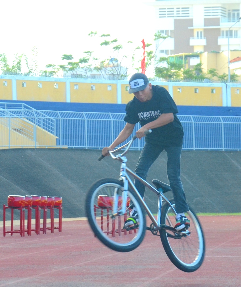 Sau hơn 1 tháng tập luyện, các cua rơ tham gia biểu diễn lòng chảo đã khá thuần thục trong khống chế tộc độ và lợi dụng lực li tâm trên lòng chảo
