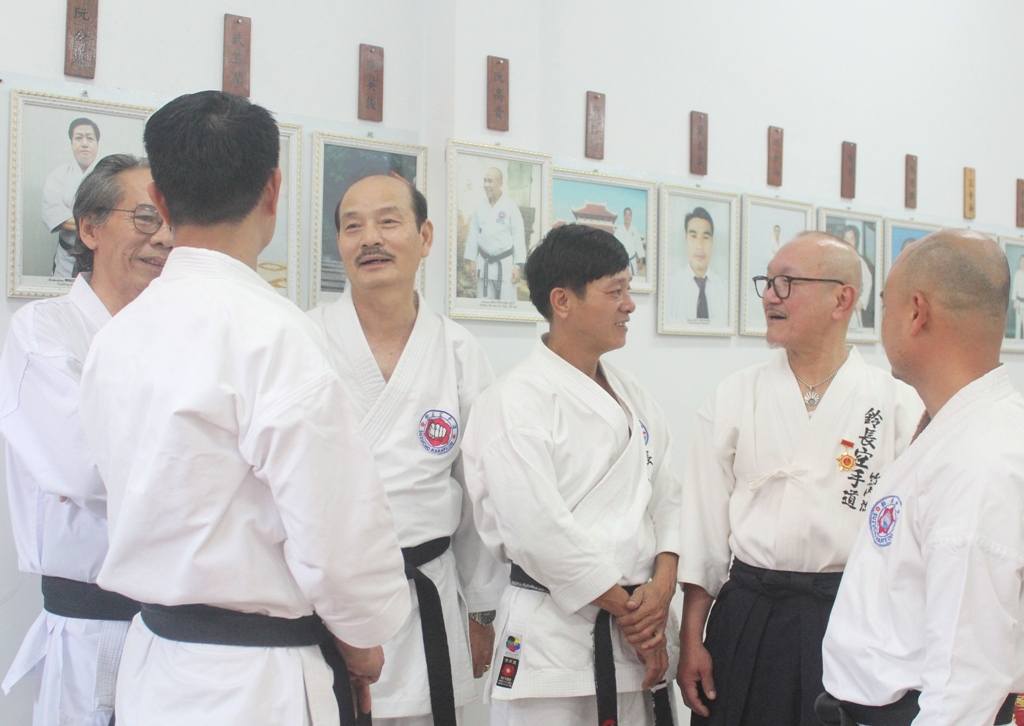 Kết thúc lễ bái Tổ, trong cuộc trò chuyện với các cao đồ, Chưởng môn Tokuo Suzuki đánh giá cao sự phát triển của Karatedo Huế những năm gần đây