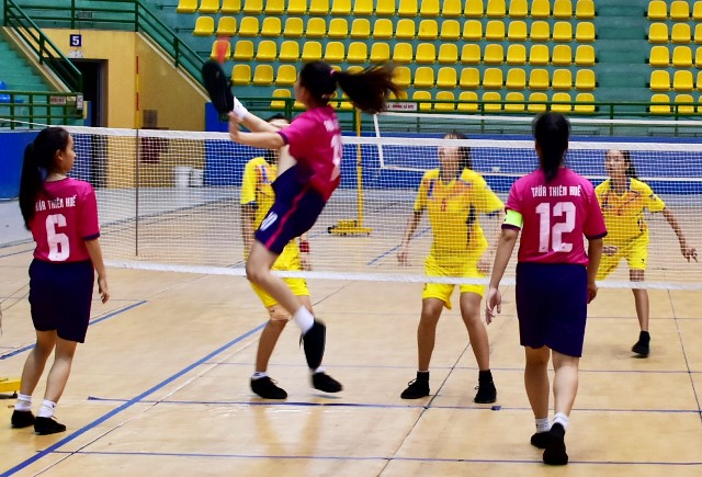 Tuyển đá cầu Huế (tím) tranh tài ngay sau lễ khai mạc