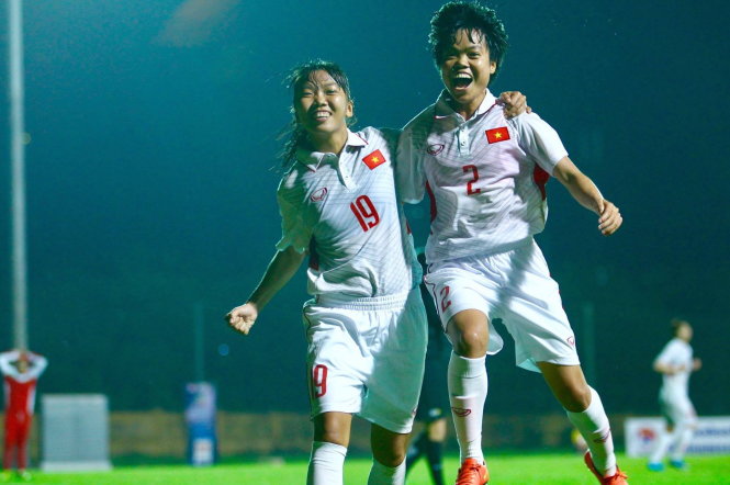 Các cầu thủ nữ VN được chờ đợi sẽ ăn mừng chiếc vé dự VCK Giải vô địch bóng đá nữ châu Á 2018 trước đối thủ Myanmar. Ảnh: NGUYỄN KHÁNH