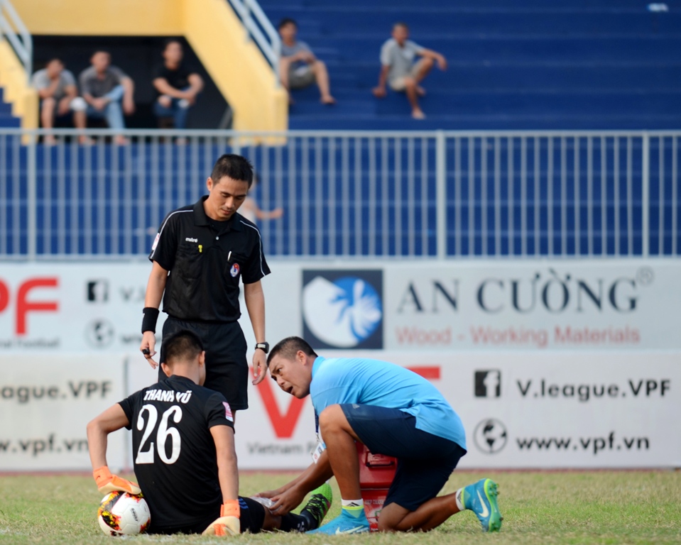 Chấn thương của Thanh Vũ sau một pha lao ra cản phá ở phút 30