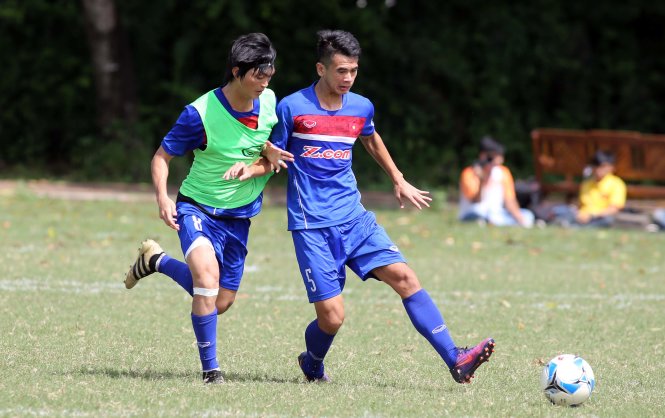 Văn Kiên (phải) và Tuấn Anh nhiều khả năng sẽ ra sân trong trận gặp U-22 Philippines.