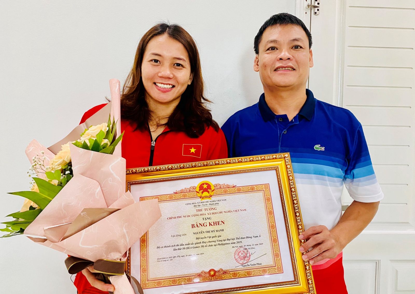 VĐV Nguyễn Thị Mỹ Hạnh vinh dự được Thủ tướng tặng Bằng khen sau thành tích xuất sắc tại SEA Games 30. Ảnh: Trang Mỹ