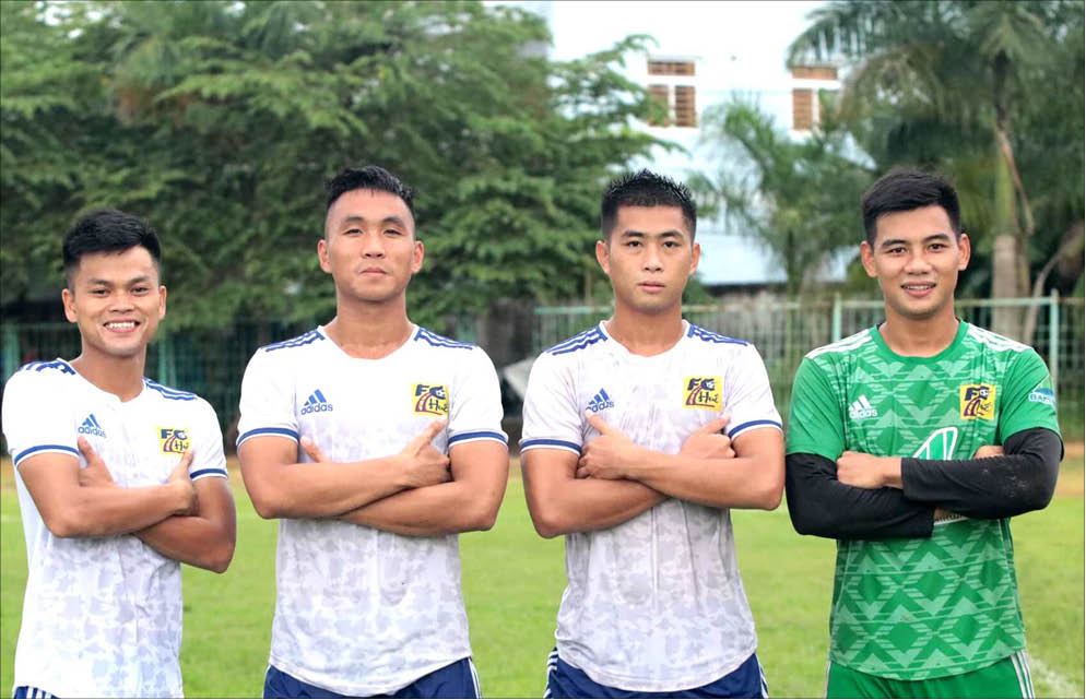 Thủ môn Tiến Tạo (thứ 2, phải sang) đã và đang để lại nhiều dấu ấn trong khung thành CLB Bóng đá Huế