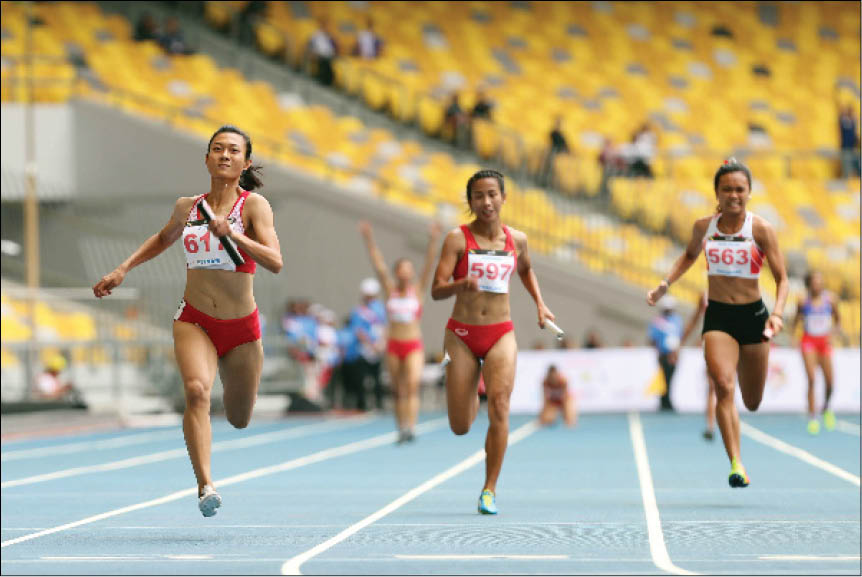VĐV Việt Nam về đích ở nội dung thi chạy 4 x 100 m