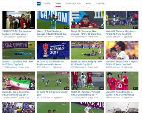 Cụ thể, tính đến thời điểm này, highlight trận đấu mở màn của U20 Việt Nam đang dẫn đầu trên danh sách BXH những clip được theo dõi nhiều nhất ở kênh Youtube của FIFA với 359.526 lượt xem từ người hâm mộ. Con số này vượt qua cả lượt truy cập ở clip highlight màn ngược dòng ngoạn mục của U20 Nhật Bản trước U20 Nam Phi.