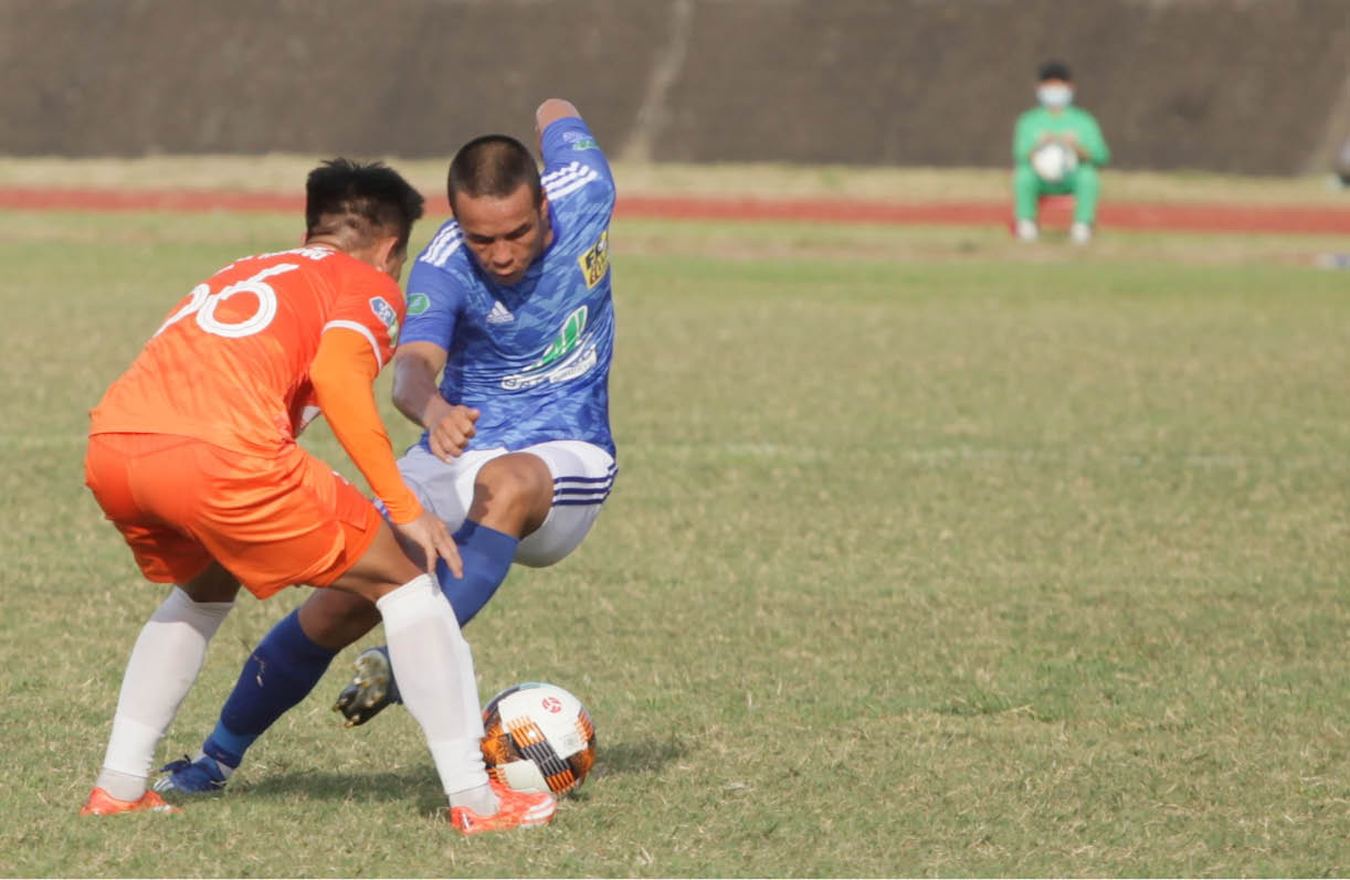 Một pha qua người kỹ thuật của cựu binh Phi Pha (phải) ở trận gặp SHB Đà Nẵng trong khuôn khổ Cúp Quốc gia