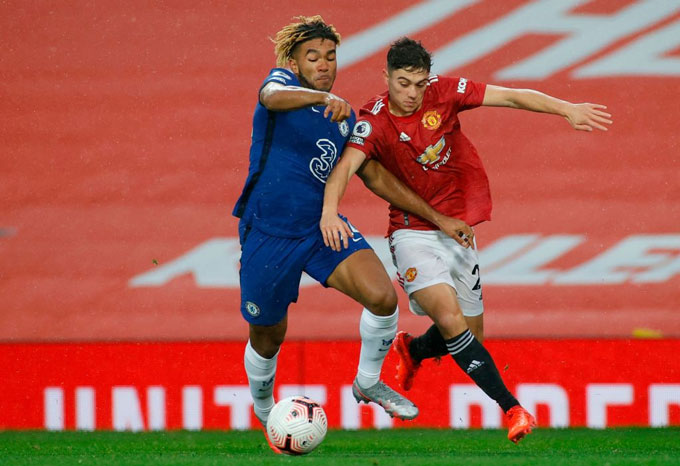 Bước sang hiệp 2, Chelsea lập tức đẩy nhanh tốc độ khiến M.U gặp bối rối tức thì. Ngay ở phút 49, Chilwell thoát xuống tốc độ bên cánh trái rồi căng ngang vào cho Ziyech đá nối bằng chân trái và nếu không có phản xạ xuất thần của David De Gea, lưới của đội khách đã phải rung lên. Sau đó, Reece James lao vào đá bồi song không vượt qua được một Luke Shaw chơi cực kì lăn xả.