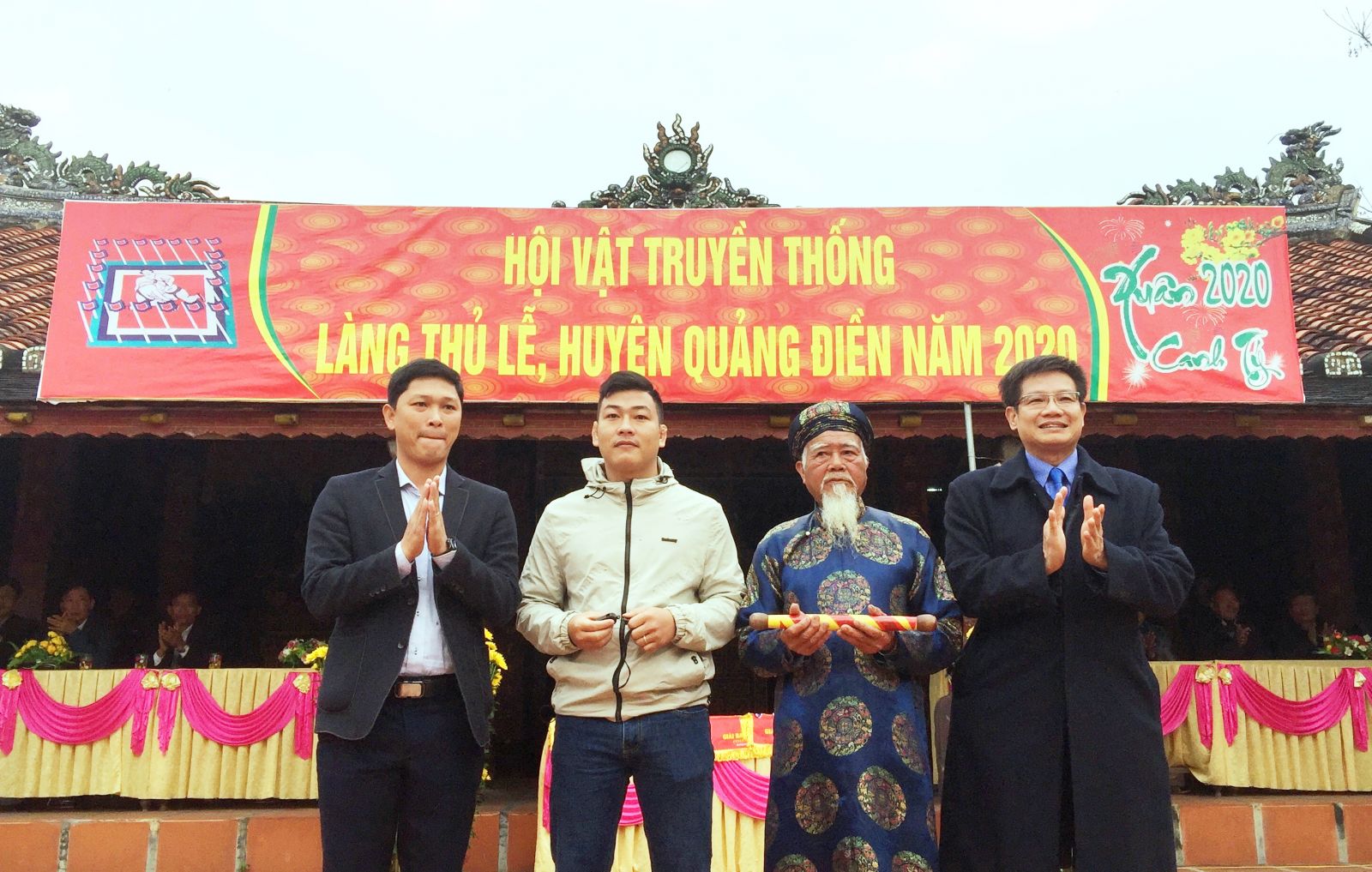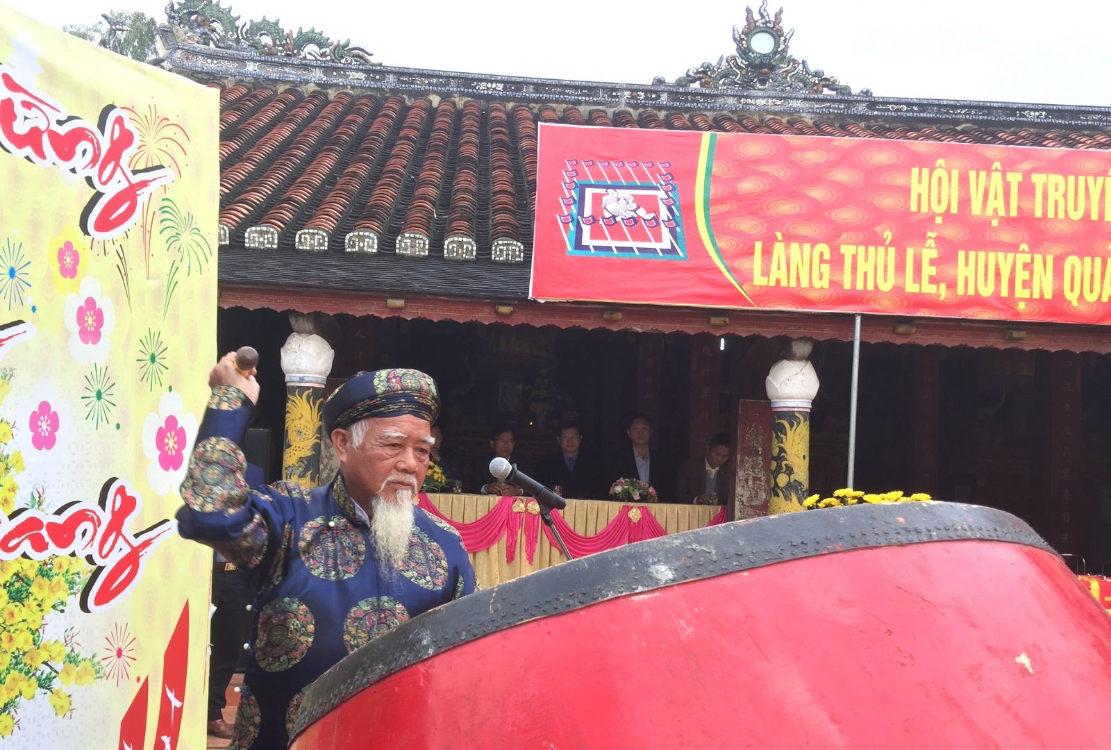 BTC trao trống lệnh, còi lệnh cho cao niên của làng Thủ Lễ và trọng tài trước giờ khai hội