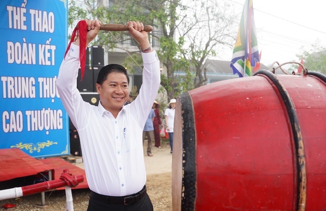 Chủ tịch UBND TX. Hương Thủy Nguyễn Thanh Minh đánh trống khai mạc giải đua