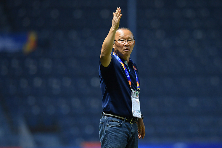 HLV Park Hang - seo cùng các học trò bước vào trận đấu với quyết tâm cao nhất, bất chấp mọi diễn biến ở trận cùng giờ. Ảnh: VnExpress