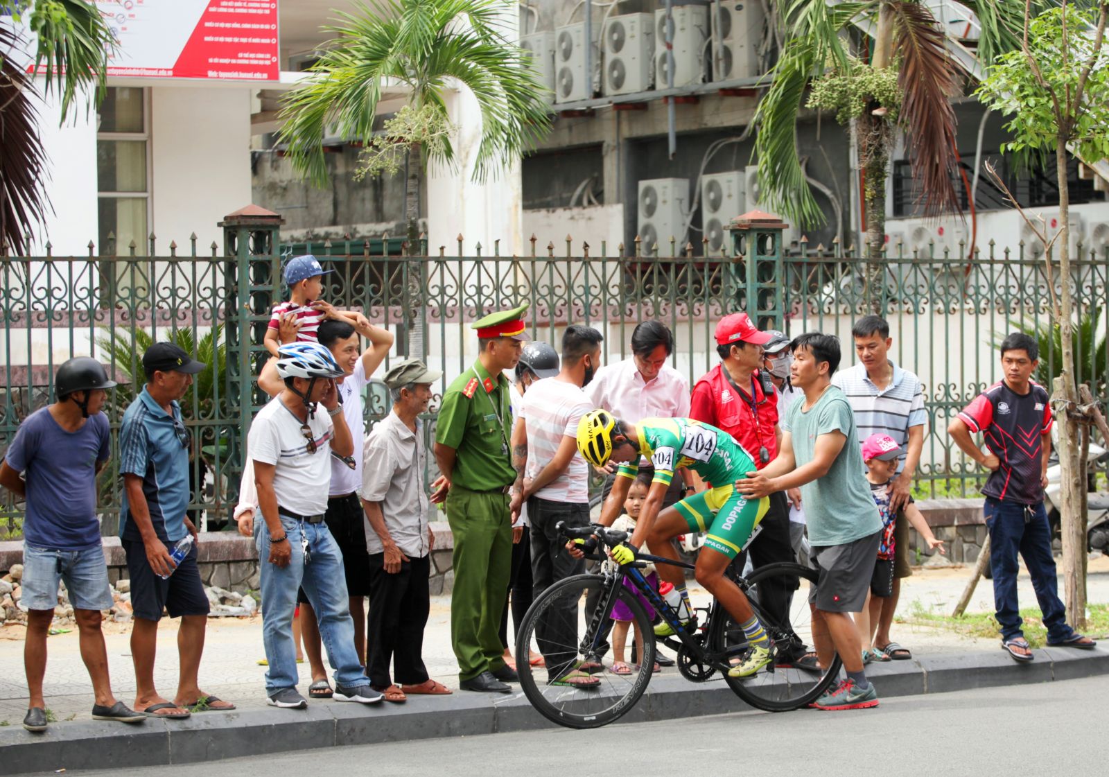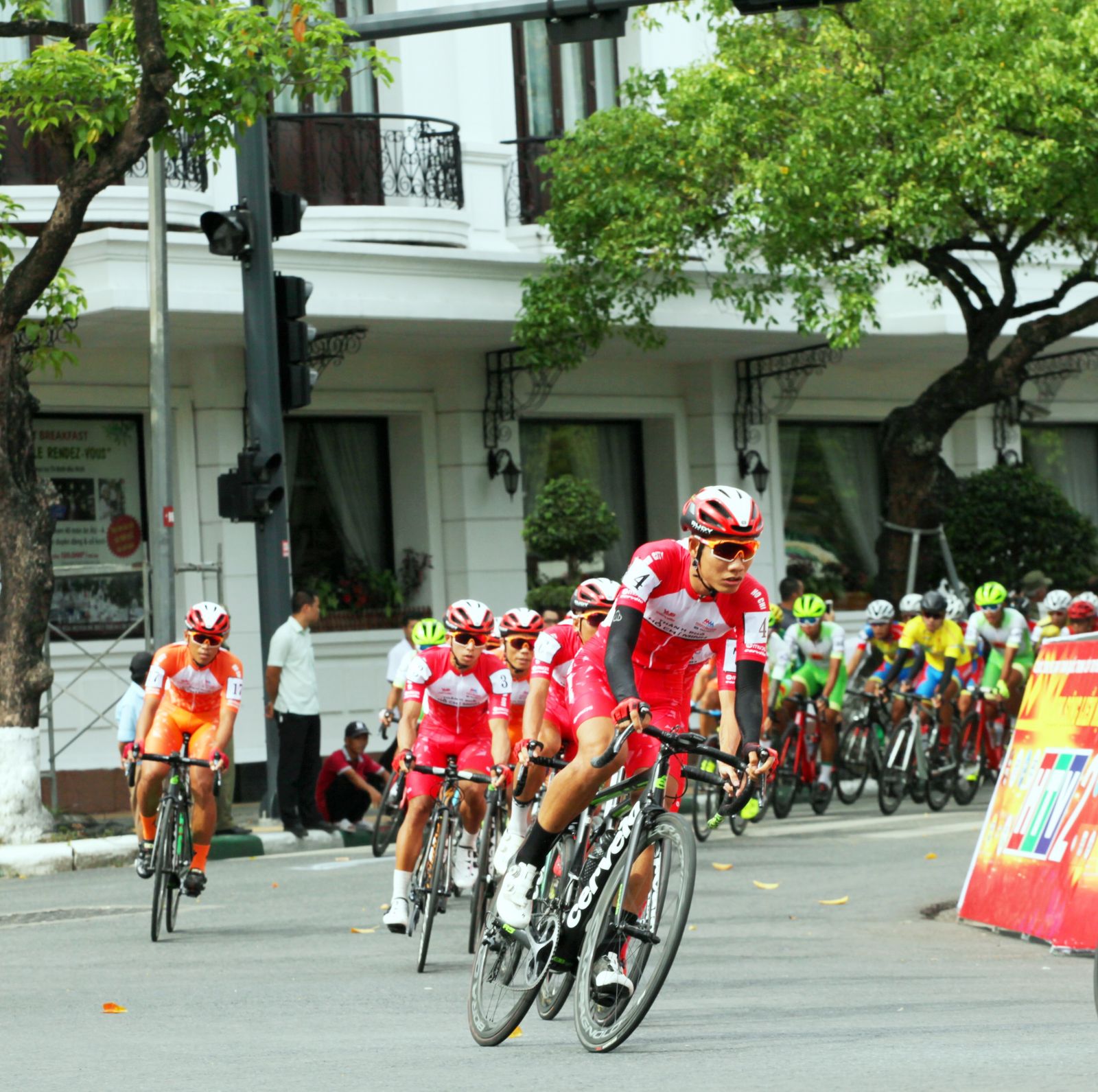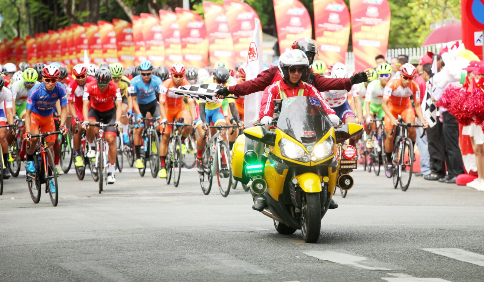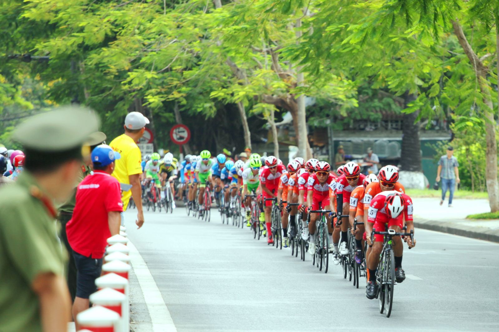 Ngang qua đường Trần Hưng Đạo trong sự theo dõi của khán giả