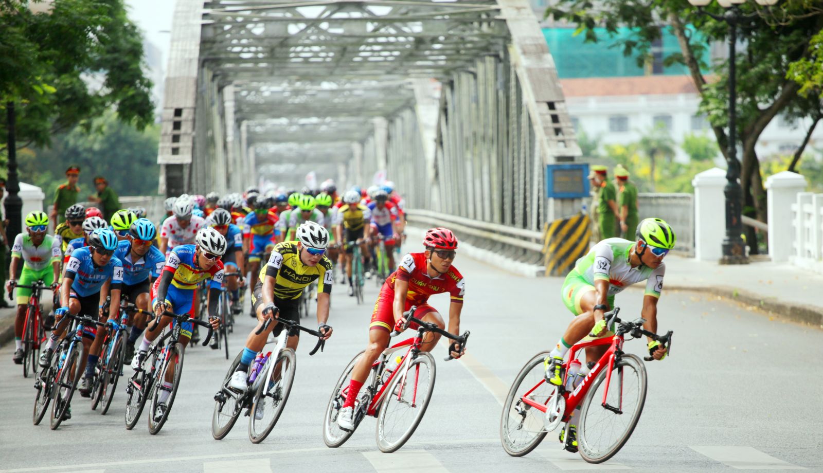 Đoàn đua hướng lên cầu Trường Tiền
