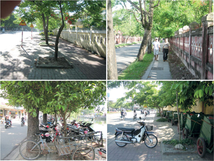 Để dễ nhận biết sự đa dạng đó, tôi tạm phân loại kiểu hình bố trí cây xanh trên vỉa hè thành phố Huế như sau: