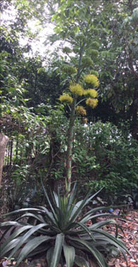 Tôi liền gửi ảnh và hỏi NGƯT Đỗ Xuân Cẩm, một chuyên gia về thực vật và cây trồng, anh cho biết: loài cây này có tên khoa học là Agave, ta phiên âm thành cây “A gao”; cây ra hoa rất muộn, nên thường ta chỉ thấy lá xanh mà thôi! Vậy nên, tôi muốn gọi đây là cây “hoa muộn”. Một sư thầy ở chùa cho biết thêm: Đúng là cây rất ít khi ra hoa; hoa lâu tàn, và chỉ ra hoa một lần (như cây chuối), khoảng 1 năm sau thì cây cũng chết luôn!