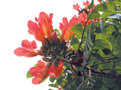 HNN - Hồng kỳ còn có tên sò đo cam, hoa chuông đỏ, tu-lip châu Phi... Đây là một loài cây gỗ thường xanh có nguồn gốc ở rừng mưa ẩm nhiệt đới miền Tây Châu Phi (Western Africa), có hoa dạng như hoa tu-lip nên có tên tiếng Anh là African tulip-tree. Do cây có hoa đẹp, nên ngay từ đầu thế kỷ thứ 20, nó đã được dẫn giống về trồng ở Singapore làm cây cảnh quan và che bóng, sau đó phát triển dần ở nhiều nước châu Á và Thái Bình Dương. Ở Việt Nam, có lẽ cây được trồng đầu tiên ở Lâm Đồng và thành phố Hồ Chí Minh.