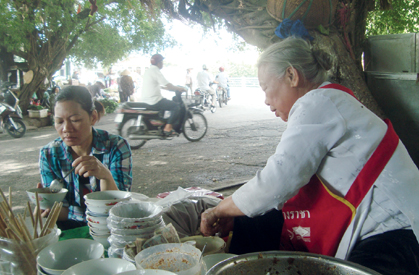 Hàng cháo gạo đã xuất hiện hơn 30 năm ở chợ Bến Ngự. Ảnh: HT