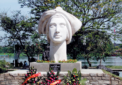 Tác phẩm điêu khắc Cô gái Việt Nam được đặt bên bờ sông Hương thơ mộng. Ảnh: Internet