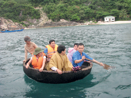 Chèo thuyền thúng đưa khách vào đảo Sơn Chà