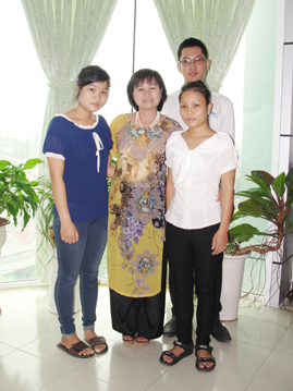 Em Hoài (trái), em Thảo (phải) và bác sĩ Nguyễn Thị Quang Hiền