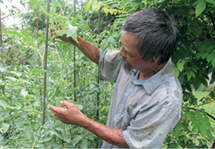 Ông Đoàn Sơn chăm sóc vườn cà chua