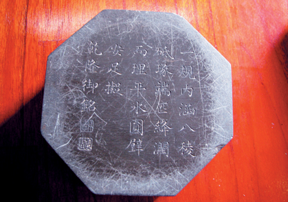 Bài văn của vua Càn Long phía sau phổng bát trần nghiên