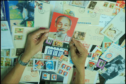 "Sưu tầm tem Bác Hồ". Ảnh: Đặng Văn Trân
