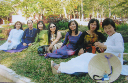 Những lần tao ngộ sau đó, tôi càng cảm nhận được chất Huế rặt trong họ. Thuở đôi mươi, họ hội tụ những yếu tố đẹp của thiếu nữ Huế: công, dung, ngôn, hạnh. Đến giờ, khi đã luống tuổi, vẫn toát lên vẻ đằm thắm, phong thái dịu dàng, cốt cách tao nhã đã từng đi vào thơ ca, nhạc họa. Vẫn duyên dáng, trang trọng trong tà áo dài truyền thống. Vẫn xôn xao, ríu rít như thuở học trò, họ kể về buổi biểu diễn văn nghệ trong lần hội trường mới đây, cùng nhau ôn lại thời vô tư, hoa mộng lúc còn học trường Đồng Khánh, không thiếu những tinh nghịch của tuổi “nhất quỷ, nhì ma”… Nghe họ trò chuyện, tôi được nghe rặt tiếng Huế xưa, êm ả, ấm áp.