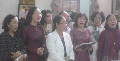 Bao giờ cũng vậy, những lần hội ngộ của cựu học sinh Đồng Khánh không thiếu lời ca. Bởi, tuổi trẻ của họ đã gắn với những bài tình ca lãng mạn, những giai điệu mượt mà, sâu lắng của Trịnh, của Văn Cao, Phạm Duy... Vì thế, gặp và hát cho nhau nghe là cách để họ thỏa niềm đam mê. Gian phòng như lặng đi trong tiếng hát thánh thót, vút cao. Mấy mươi năm về trước, họ từng hát khi còn là thiếu nữ đôi mươi. Nay, có người đã là bà nội, bà ngoại nhưng họ vẫn hát say sưa, trong trẻo, vẫn luyến láy nhả chữ một cách điệu nghệ. Dường như, trong giọng hát ấy, không tồn tại những dấu tích của tuổi tác. Cứ thế, họ thả hồn theo nốt nhạc, bay bổng trong những tình ca bất hủ. Những bài ca quen thuộc và đi vào lòng người của nhiều thế hệ, như: Diễm xưa, Hãy yêu nhau đi, Đưa em tìm động hoa vàng, Thiên thai, Ngậm ngùi… và cả những bài nhạc Pháp làm người nghe xao xuyến.