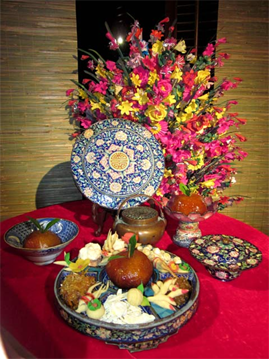 Tháng chạp. Các đám cưới thưa dần. Lại rục rịch chuẩn bị đón Tết. Mẹ tỉa hoa trang trí món ăn rất đẹp. Từ nguyên liệu cà rốt, củ cải, bà tỉa thành những bông cúc, bông hồng xinh xắn. Ngày ấy, thị trường chưa có những bộ dao cắt tỉa trái cây tiện lợi như bây giờ, nên phải đặt riêng thợ rèn một bộ dao đặc biệt. “Năm 1980, khi bà Từ Cung (mẹ của Vua Bảo Đại) thấy trong người bất an, mới gọi con cháu về để truyền món tỉa hoa từ rau củ. Me là một trong những người được bà dạy, vì vậy con phải lo học để mai sau còn dạy lại cho con, cháu mình”, bà dặn tôi. Tôi không có tính kiên trì, nhẫn nại như người khác, nên việc biến từng củ rau thành những bông hoa mềm mại, kiêu sa, lộng lẫy là điều khó có thể. Nhưng sau vài giờ đồng hồ, dưới sự hướng dẫn của bà, tôi cũng đã tỉa thành công những bông hồng màu gạch từ một khúc cà rốt và những bông cúc trắng tinh khiết từ nguyên liệu củ cải.