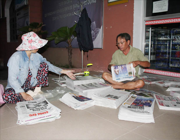 Nhà ở Thủy Biều (cách trung tâm thành phố chừng 10km), cả chục năm nay, cứ 3 – 4 giờ sáng hai chị em chị Bé lại đạp xe đi lấy báo, rồi còn tranh thủ đi bán cho kịp giờ buổi sáng. Chậm trễ chút nào sẽ khó bán chừng đó. Chị Bé bảo ở quê, sống phụ thuộc vào mấy sào ruộng, kiếm được 100 ngàn ngày rất khó, còn đi bán báo dạo trung bình một ngày cũng kiếm được 80 – 100 ngàn đồng, do vậy có vất vả cũng “bám nghề” để trang trải cuộc sống gia đình. Lãi 800 – 1000 đồng/tờ, nhưng đối với những người bán báo dạo thì mỗi tờ báo bán đi là cả một niềm vui. Đối với họ, sương gió, nắng mưa, hay đi bộ chục cây số mỗi ngày là chuyện bình thường, nhưng vẫn luôn mong ngày nắng nhiều hơn ngày mưa để công việc được thuận lợi hơn. Ngày mưa không những đi lại rất vất vả, mà khách mua báo cũng ít hơn, có khi phải đưa báo về trả cho đại lý. Nếu hôm nào bán không hết báo ngày thì còn phải chịu lỗ. “Còn rất nhiều người thích đọc báo giấy lắm. Bởi thông tin từ báo giấy luôn được coi là chính thống; cách trình bày diễn đạt cũng dễ hiểu hơn. Báo giấy vẫn đang có chỗ đứng trong lòng bạn đọc. Hơn 10 năm theo nghề, tôi cũng đã kiếm cho mình được hơn 15 khách “ruột””, chị Bé cho biết.
