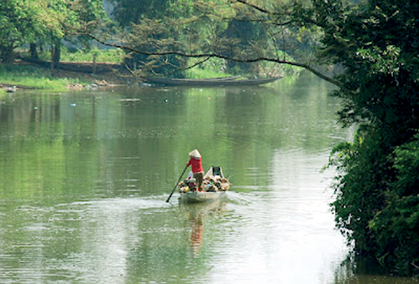 Từ nhà mình đến sông Ô Lâu phải đi qua một đoạn đường chừng cây số là những bờ ruộng, bến đò và đến bợt rào (sông). Cách một đoạn sông không biết từ bao giờ dân làng đào một con hói và tạo thành một cái bến đò: bến Đa, bến Bù, bến Đình, bến Ông Minh, bến Chợ, bến Đồng Dạ. Trong các bến này, bến Chợ là bến đò chính nơi xuôi ngược những chuyến đò đi Huế, Mỹ Chánh, Ưu Điềm... Các bến còn lại chủ yếu là nơi ra vô của những chiếc ghe nhỏ đánh cá; chỉ tấp nập khi ngày mùa tới khi những chiếc ghe vàng ươm màu lúa chín mới gặt từ cánh đồng bên kia sông về nhà. Lại nói về cánh đồng bên kia sông Ô Lâu, người làng gọi là bên Cồn. Cũng là những cánh đồng thôi nhưng dân làng lại có nhiều tên gọi khác nhau; những thửa ruộng nhỏ ven đường làng được gọi là Trưa má; ruộng ở bên này sông là ruộng Nội điền; ruộng bên kia sông là Cồn. Mà ở bên Cồn, mỗi cánh đồng lại có những tên riêng: Cồn Đùng, Cồn Nẩy, Ruộng ông Cổ Câu, Hai mươi mậu, Hói Mít... Đó là những cánh đồng lúa rộng mênh mông, phì nhiêu; hồi trước mình vẫn lên ghe qua sông theo ba mạ đi cày, cấy, tát nước rồi cắt lúa ở ruộng Cồn. Làng mình có hai cái miếu thờ hai người có công trạng với làng về mở mang ruộng đất đó là miếu ông Xạ và miếu mụ Bà. Ông Xạ làm rể làng trên được giao sổ sách về điền thổ nên bớt của làng vợ cho làng nội ít ruộng bên Cồn; còn mụ Bà là con gái làng mình về làm dâu làng dưới; một lần đi chợ về thấy cục đá làm ranh giới phân chia hạn điền hai làng, bà lận cục đá vào lưng quần kéo đi một đoạn khá dài để làng mình được thêm mấy chục mẫu ruộng bên sông. Bây giờ, dân làng vẫn hương khói cho hai ngôi miếu này mỗi dịp lễ, tết...