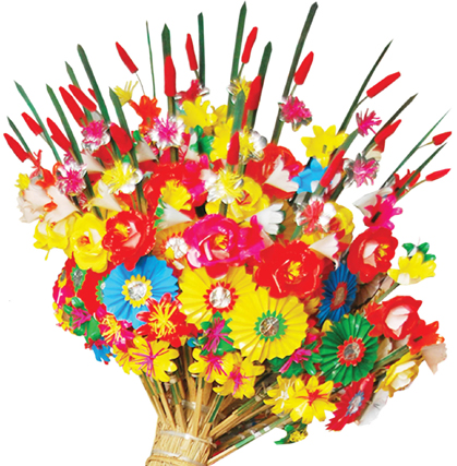 Chúng tôi mỗi người mỗi hướng chạy đua cùng thời gian. Người tìm giấy dó cùng nghệ nhân Kỳ Hữu Phước thực hiện việc hồ điệp, pha chế màu tự nhiên,… lựa chọn và sắp xếp thành bộ những bức tranh làng Sình đạt chuẩn để trưng bày. Người lục tìm giấy ngũ sắc cùng gia đình nghệ nhân Nguyễn Văn Hoá (làng Thanh Tiên) phục dựng lại những cây hoa giấy đúng sắc màu truyền thống, kể cả loại bông lùng từ lâu đã vắng bóng, cây bông đũa nhuộm ngũ sắc làm từ xơ tre, lẫn cây dao tre dùng trong lễ cúng Bà bổn mạng đầu năm. Có thể nói rằng, một phần công việc xem như đã hoàn thành đúng “tiêu chí phục nguyên truyền thống”, bởi trước đó không lâu, chúng tôi từng tổ chức phục dựng lại quy trình làm tranh và hoa giấy ở hai ngôi làng này có ghi chép tư liệu và hình ảnh phục vụ việc nghiên cứu đầy đủ.