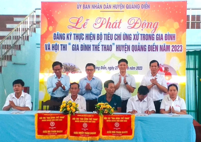 HNN.VN - Sáng 27/6, UBND huyện Quảng Điền tổ chức Lễ phát động triển khai đăng ký thực hiện Bộ tiêu chí ứng xử trong gia đình trên địa bàn huyện và hội thi “Gia đình Thể thao” năm 2023.