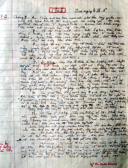 Trang nhật ký đầu tiên đề ngày 6/9/1945
